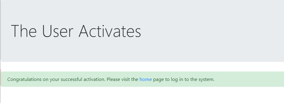 The system prompts that the account has been activated successfully. Return to the home page to log in to the system.